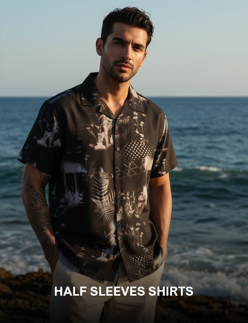 Beige Tropical Leaf Print Half Sleeve Shirt