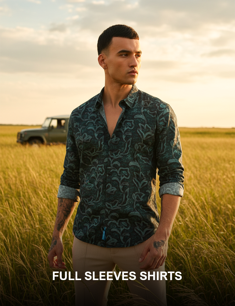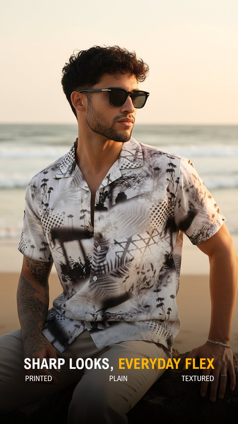 Men's Black Abstract Nature-Print Cuban Collar Shirt